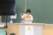 管内の児童生徒美術作品展の表彰式と,新年度前期児童会役員の任命式を行いました。