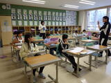 家庭科の調理実習で5年生はみそ汁を、6年生は野菜炒めを作りました。教科書のレシピの手順を見ながら、次は何だろう、これはどんな切り方をするんだったかな、と確認しながら料理を進めました。みそ汁は煮干しのだしをとるところから始め、具材の大根、油揚げ、ネギを切り、みそをとくときは全員が体験できるよう分量のみそを人数分に分けました。6年生の野菜炒めの具材はキャベツ、ニンジン、ピーマン。レシピにある味付けの塩コショウの分量の『少々』に、少々ってどれくらい?と言いながら自分のさじ加減で味付けをして完成。5年生はみそ汁を6年生に、6年生は野菜炒めを5年生にそれぞれおすそ分けして試食しました。6年生はおすそ分けをする際、野菜炒めの味が薄かったらどうぞ、と塩こしょうを5年生のテーブルにそっと置く気配りも。作った料理はどちらもとてもおいしくいただくことができました。