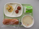 ラジオ体操をして、朝食のサンドイッチを食べています。
